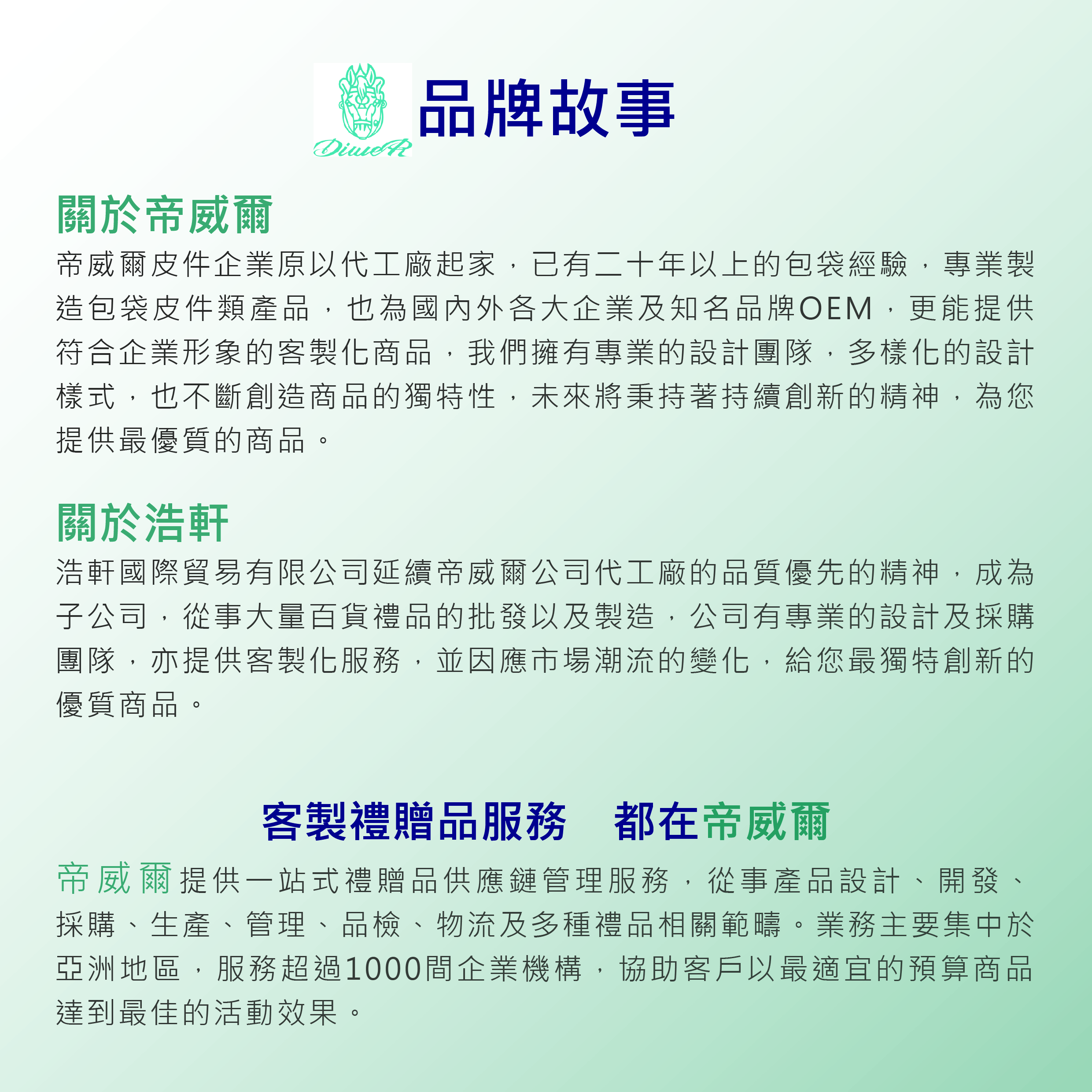浩軒國際是百貨,禮贈品,專業生產.更能提供符合企業形象的客製化商品,我們擁有專業的設計團隊,多樣化的設計樣式,也不斷創造商品的獨特性,未來將秉持著持續創新的精神,為您提供最優質的商品。。