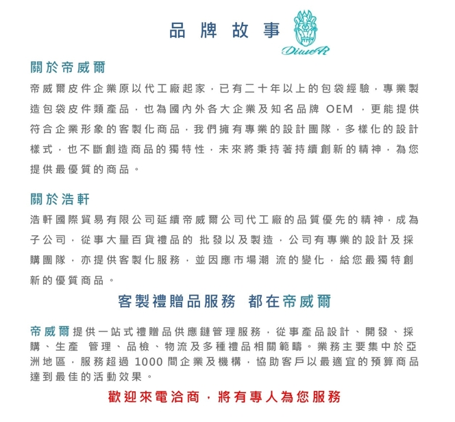 ※帝威爾公司皮件企業從事、專業包袋、皮件生產開發設計、已有二十幾年以上