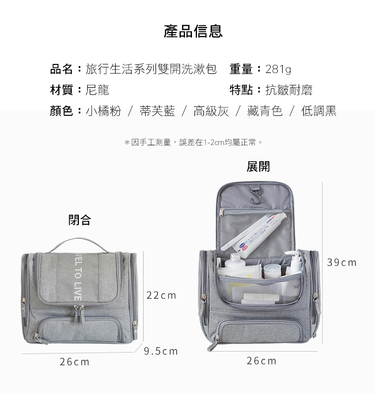 品質優良:尼龍製造的尼龍旅行系列雙開洗漱包