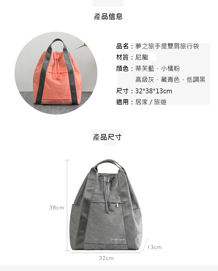 品質優良:尼龍製造的尼龍手提雙肩旅行袋